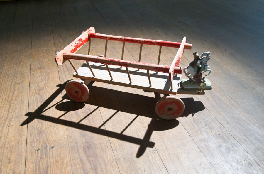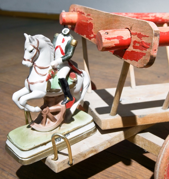Being Napoleon2018, Hay wagon heirloom, Napoleon Porcelain Figurine, Oil on found paper in France