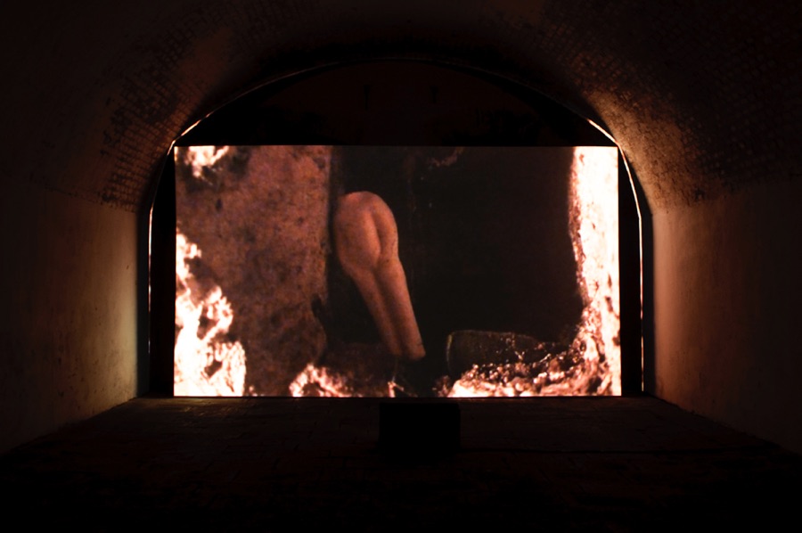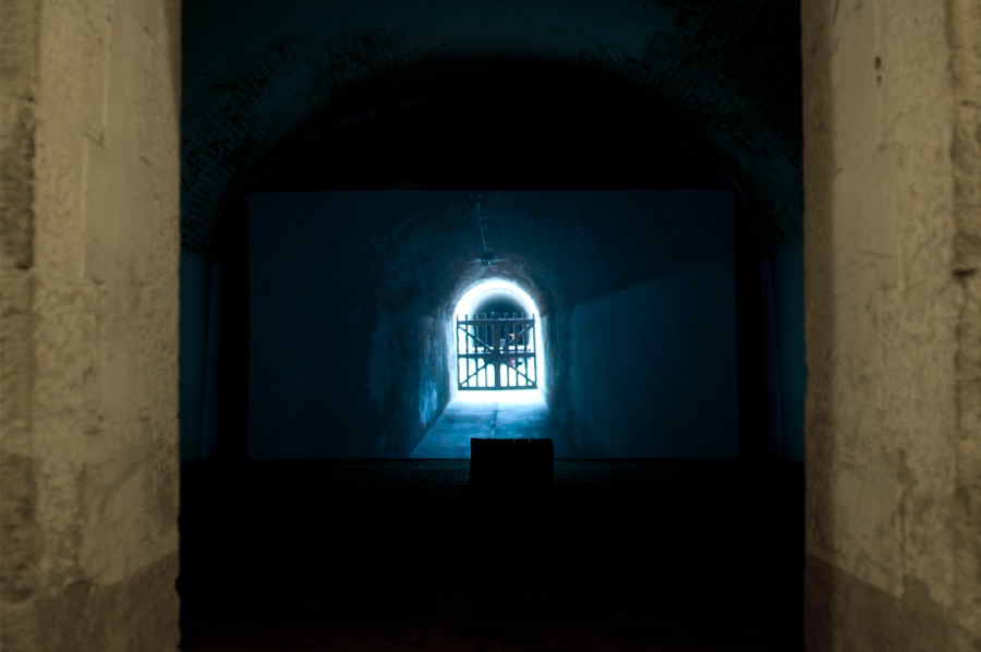"(…) The video-installation from Sandra Hauser is a journey shot with a hand camera during days in the military fort Carpenedo and into herself, in an infinite cycle of exchange between the meat and the walls and what they are holding. The research of Sandra inside of Hauser and backwards - a dramatic research of what she was in the past and what she became today, to have a future. Sandra Hauser reminds us always that we are human beings, with our complexities and weaknesses, with our dramas and our triumphs and, overall with our responsibility to ourselves and to everything which surrounds us."