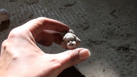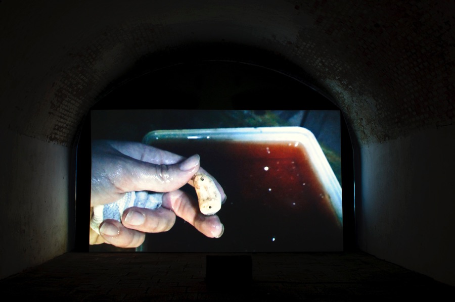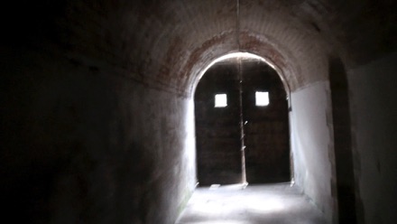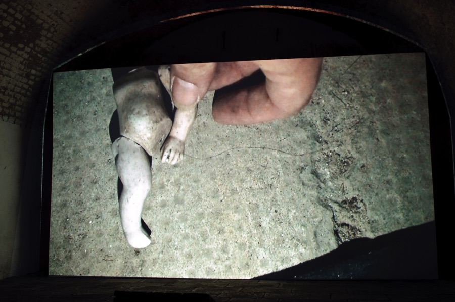 The film is a psychologic realtime travel with the artist into an old military fort called Carpenedo. The docu-fiction, shot with a hand-camera, shows the subjective experience of her passing through the 900 m long corridor, entering one by one the rooms, searching, digging, finding and playing. The fort is thought like a body and its rooms are like the hidden places in our human psyche. The presence of the artist is reinforced with sound recordings of her breath and steps. Touching, searching and collecting objects only with her left hand and a torch light in her right hand, the film gets a video-game esthetic without using any special effects.