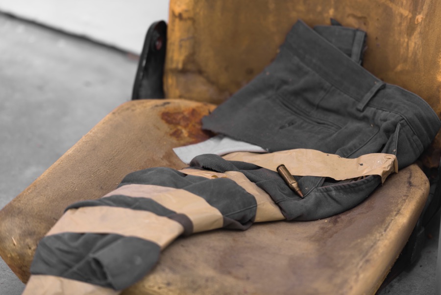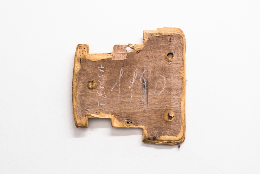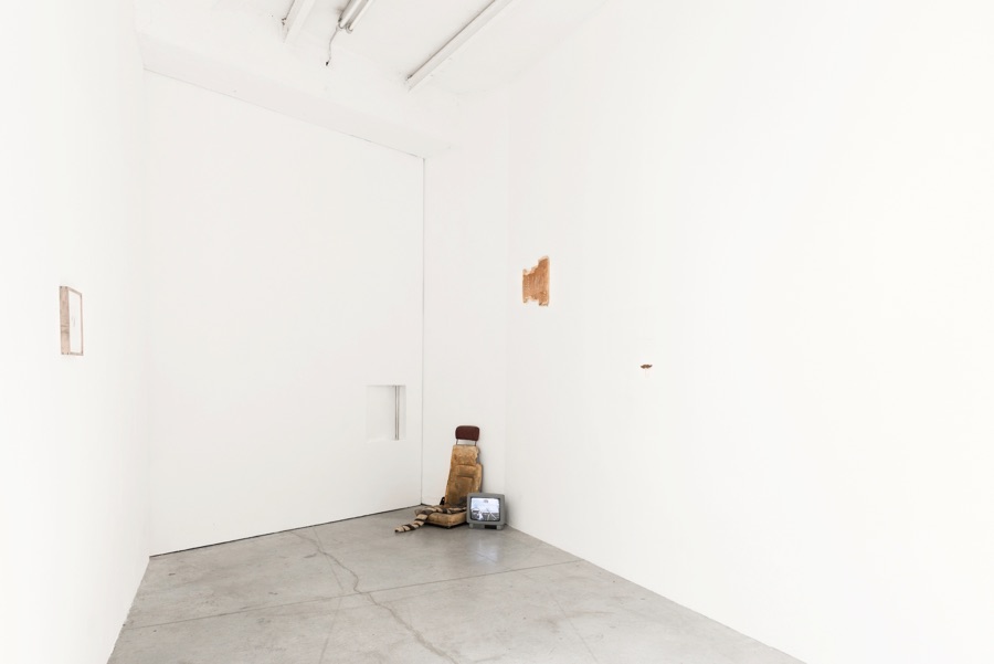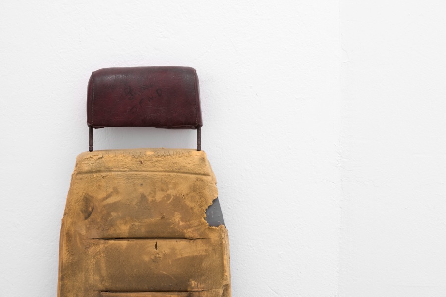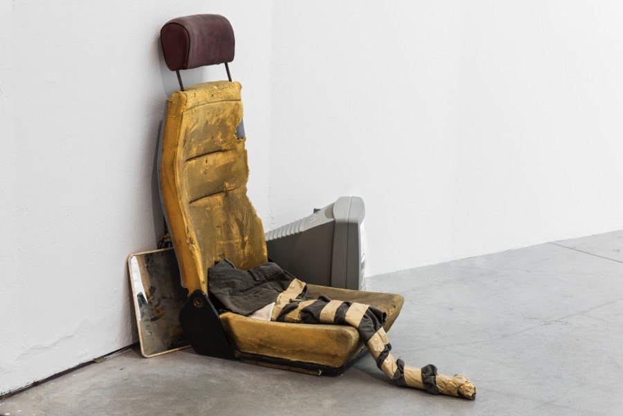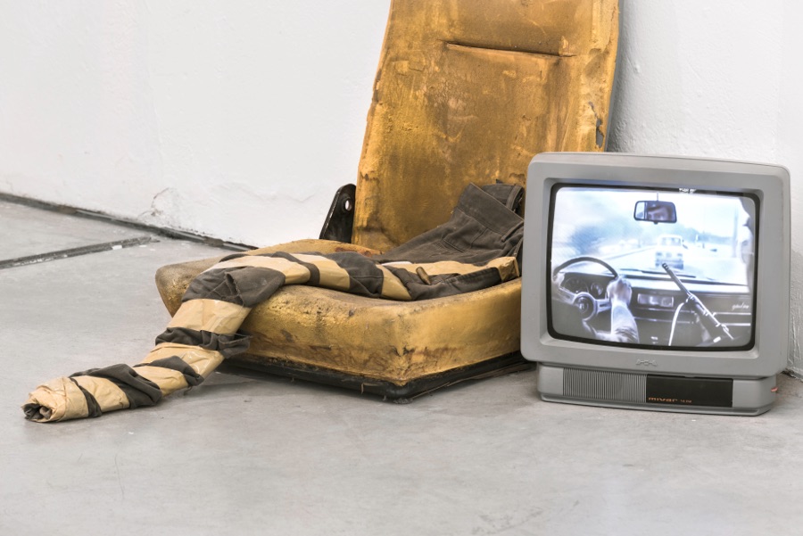 2017 Mixed Media, Criminal Films Milan 70ths, Old televosion 70ths, Car seats 70ths, Gun Ball, Trousers 70ths, wax sculpture, 2x tinder fungus ready made, wall-drawing watercolors beard