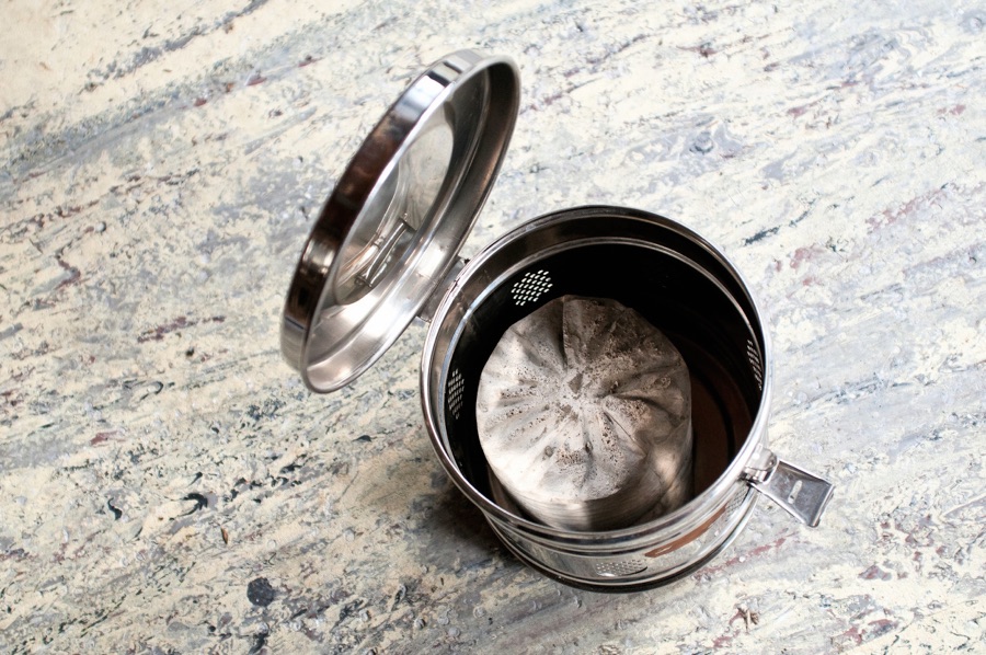 Silver container 25 cm height (object Village ENI,around 1950) concrete