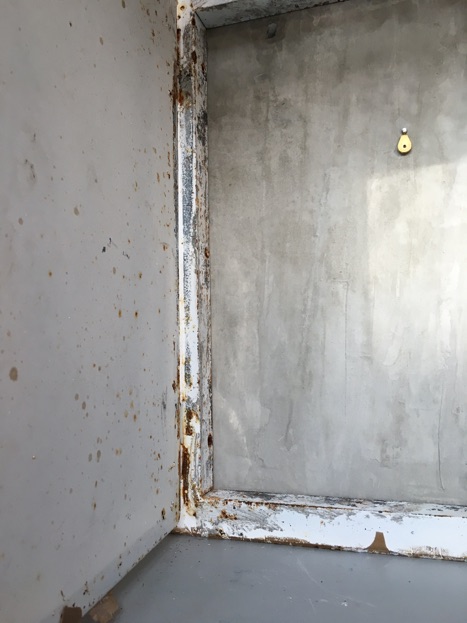 Transparent paper oiled, concrete, Aluminium door (object Village ENI)