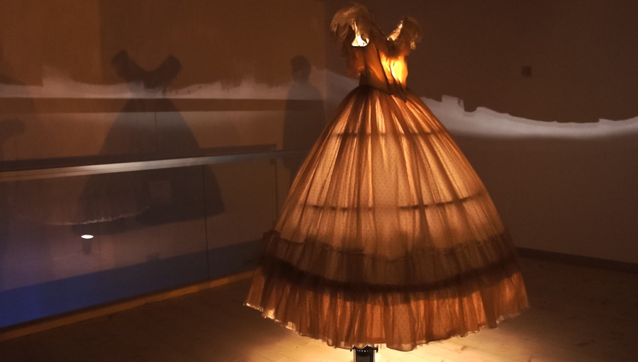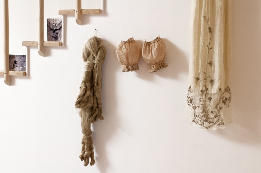 Dress from the year 1834, 5 black and white photographies10x13 cm, objects, Size two rooms on two floors, around 25qm each