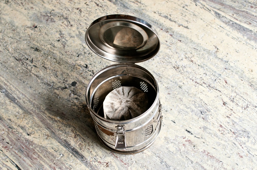 Silver container 25 cm height (object Village ENI,around 1950) concrete