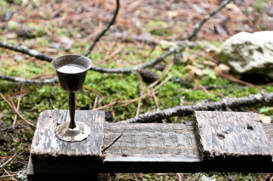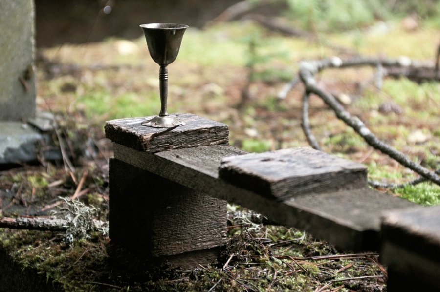 Chalice 10 cm (around year 1900), concrete, piece of old wood, Joker (object Village ENI)