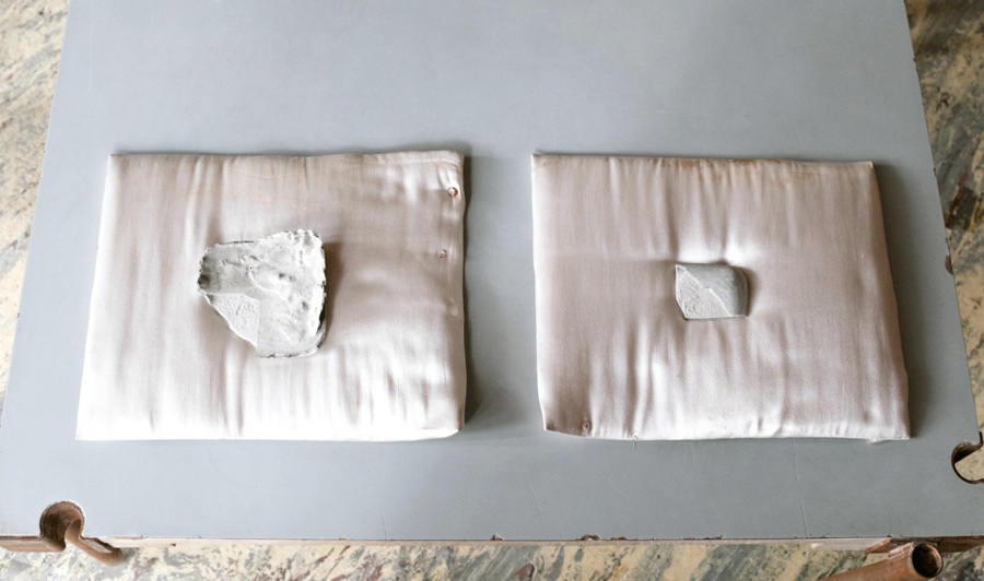 2 Cushions 50 x 25 cm (object Village ENI,around year 1950) concrete