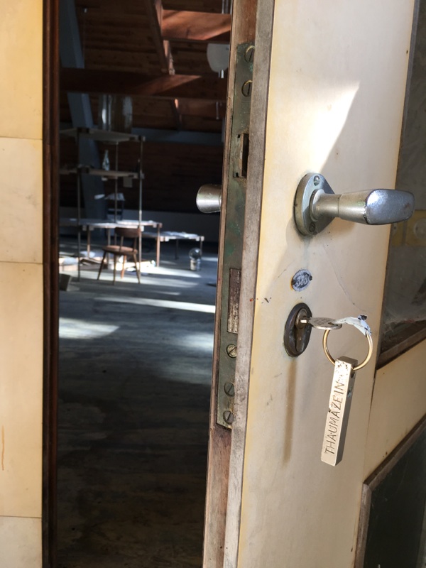 Transparent paper oiled, concrete, Aluminium door (object Village ENI)