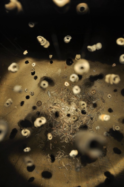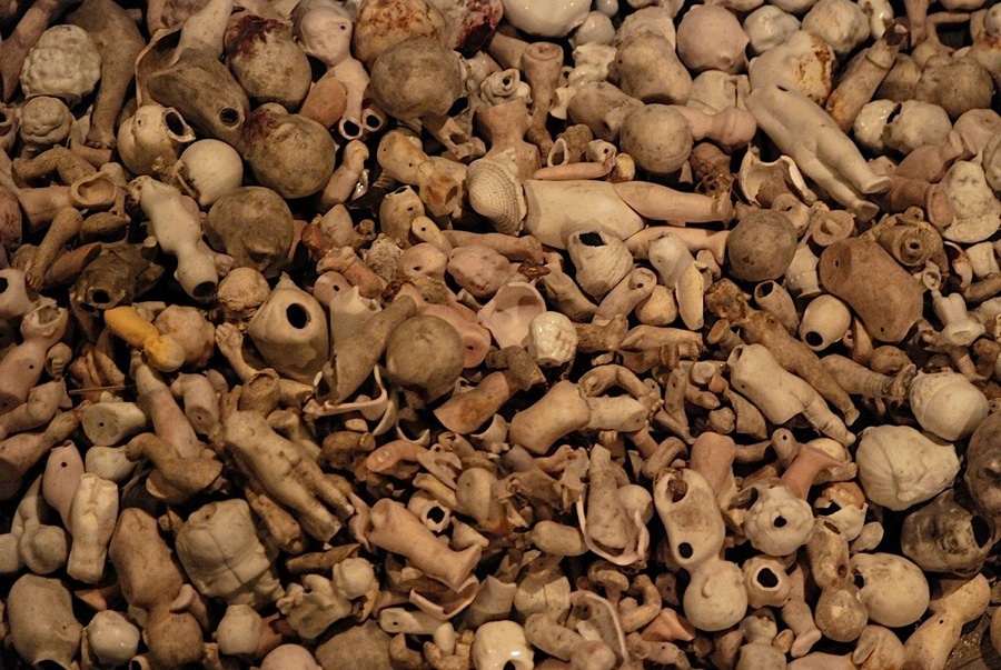 The work was installed in the cistern of old barracks on Monte Rite in the Dolomite Mountains during the exhibition “La Ultima Vista .” The dolls are broken, dysfunctional, and dirty.