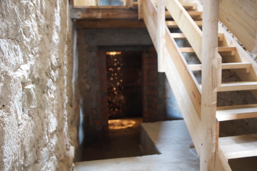 The lower room is the old cistern where it is damp and dirty like in a dungeon. Upon closer examination one recognizes the mountain of pieces as severed arms and legs of